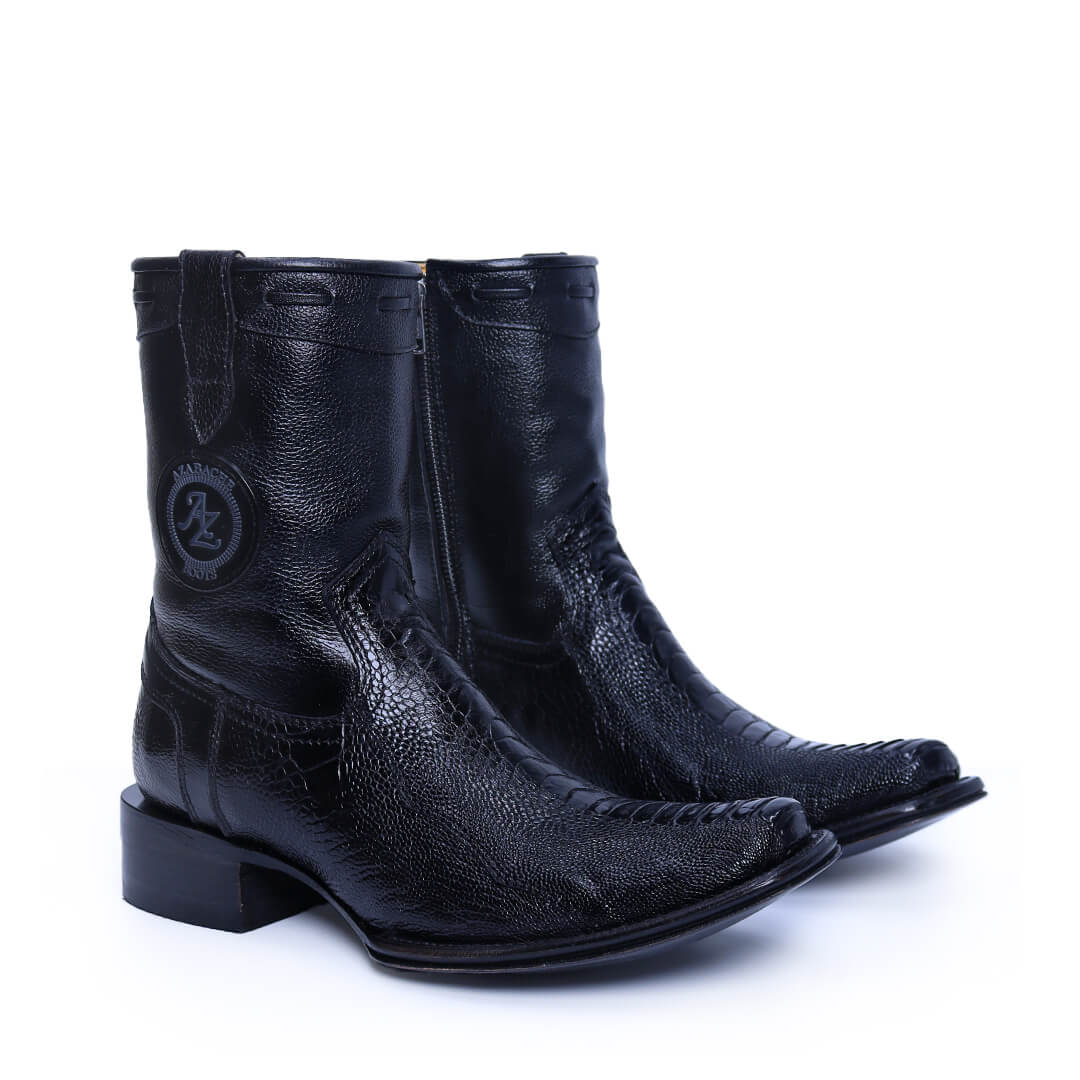 Te presentamos nuestro exclusivo Botín Dilan diseñado en piel legítima de pata de avestruz africano de la más alta calidad, con la distintiva horma Dubai.