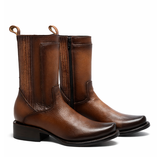 Cada par de botas nace en manos de artesanos que dominan la tradición del cuero. Desde la selección de pieles, hasta el corte preciso y el cosido a mano, cada detalle refleja dedicación y maestría.
